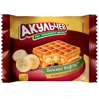 Вафли Акульчев "Венские", со вкусом банана, 50 г