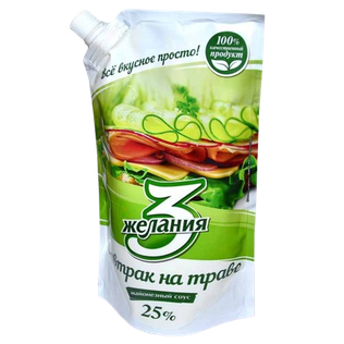 Mayonnaise "3 Wünsche" Olive 67% 190 g AO "Evrazian Fuds Korporeyshn" 350.00 ₸ /None, от 1.00 None